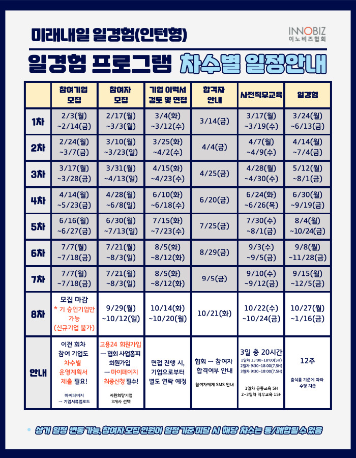 <2025년 미래내일일경험(인턴형) 차수별 일정안내>