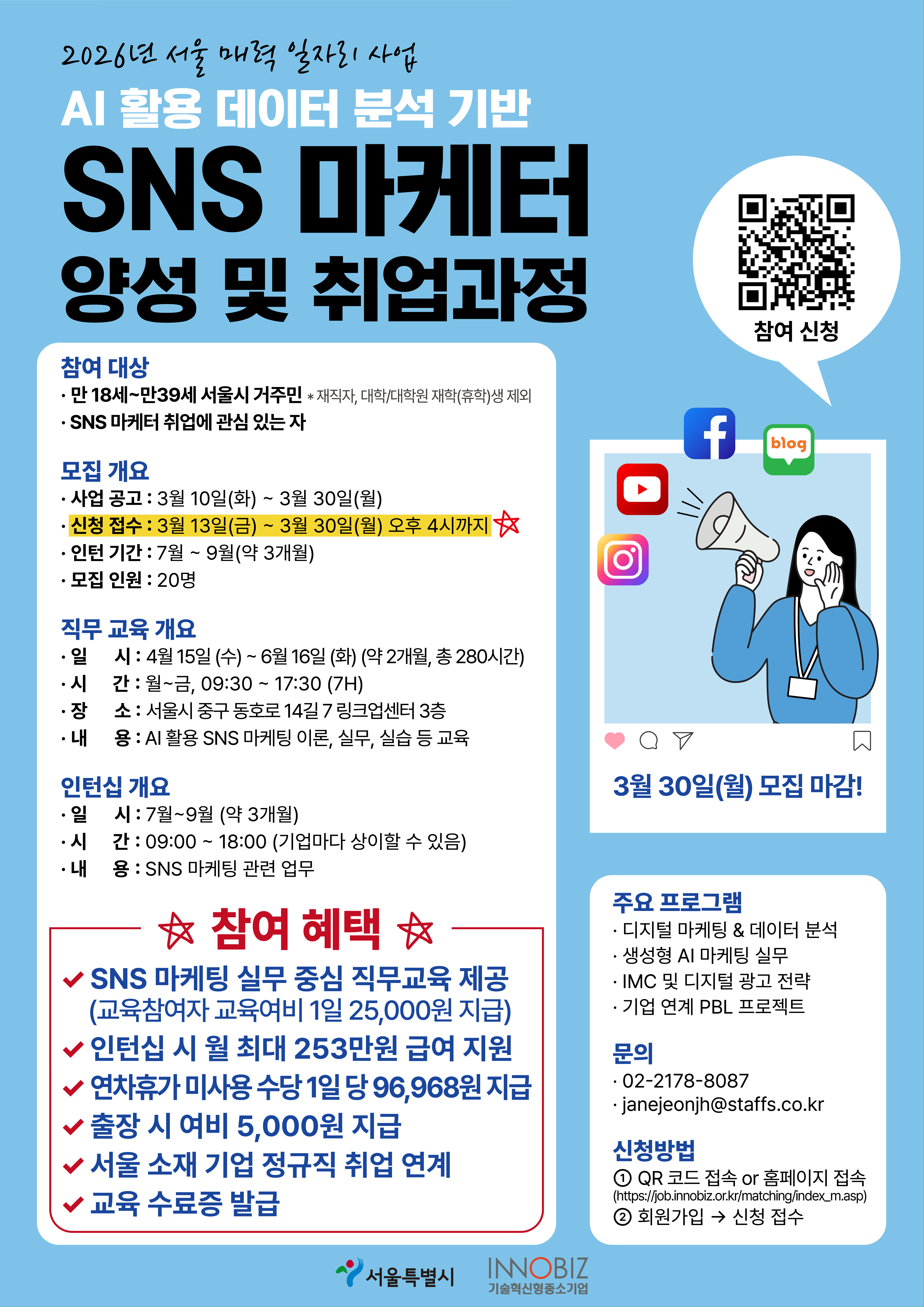 2026년 서울 매력일자리 사업 ″데이터분석 기반 SNS 마케터 양성 및 취업 과정″ 참여기업 모집