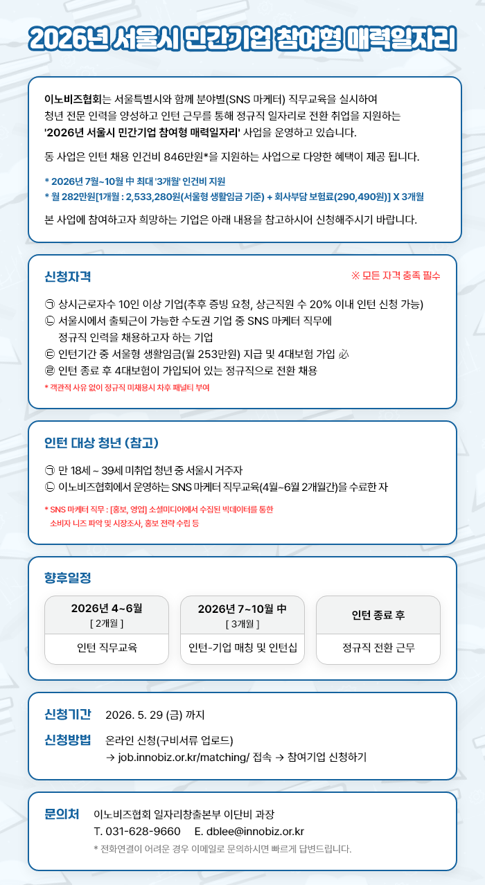 제목 2026년 서울 매력일자리 사업 ″데이터분석 기반 SNS 마케터 양성 및 취업 과정″ 참여기업 모집